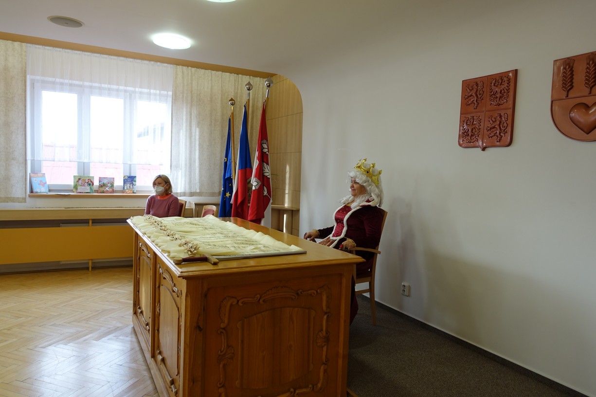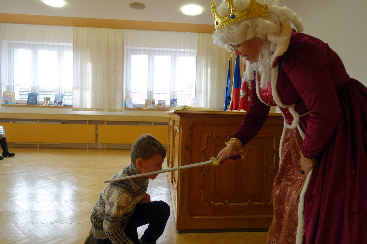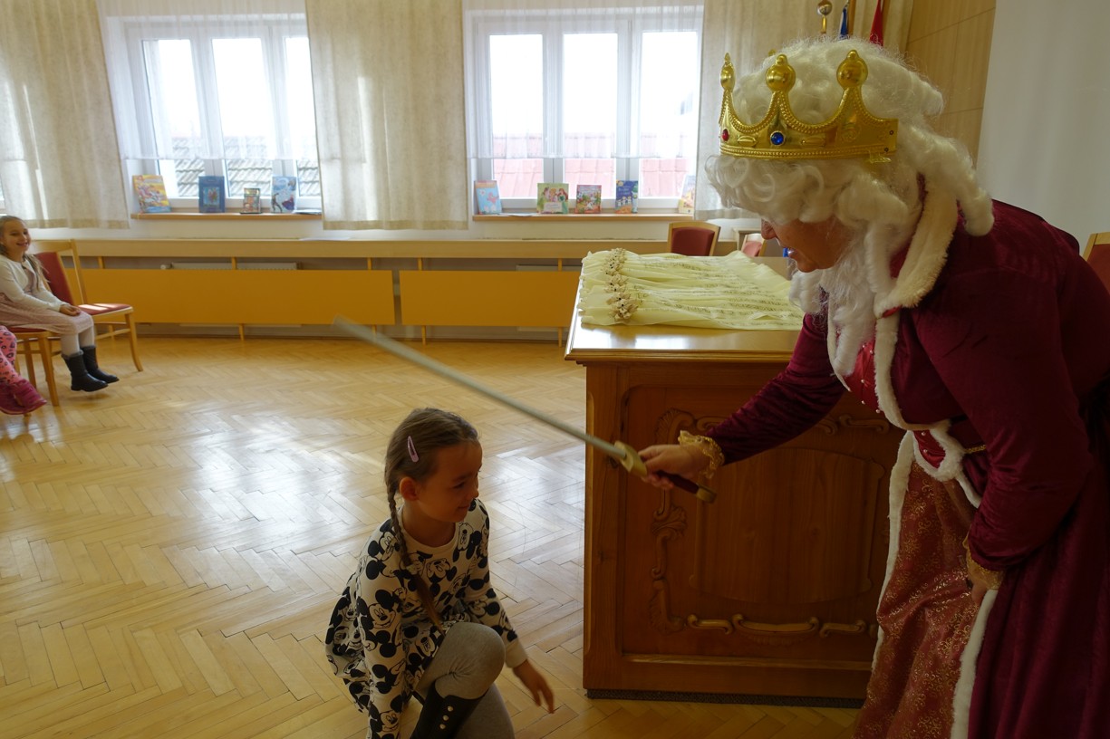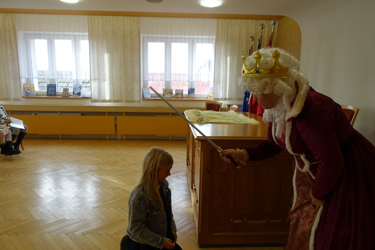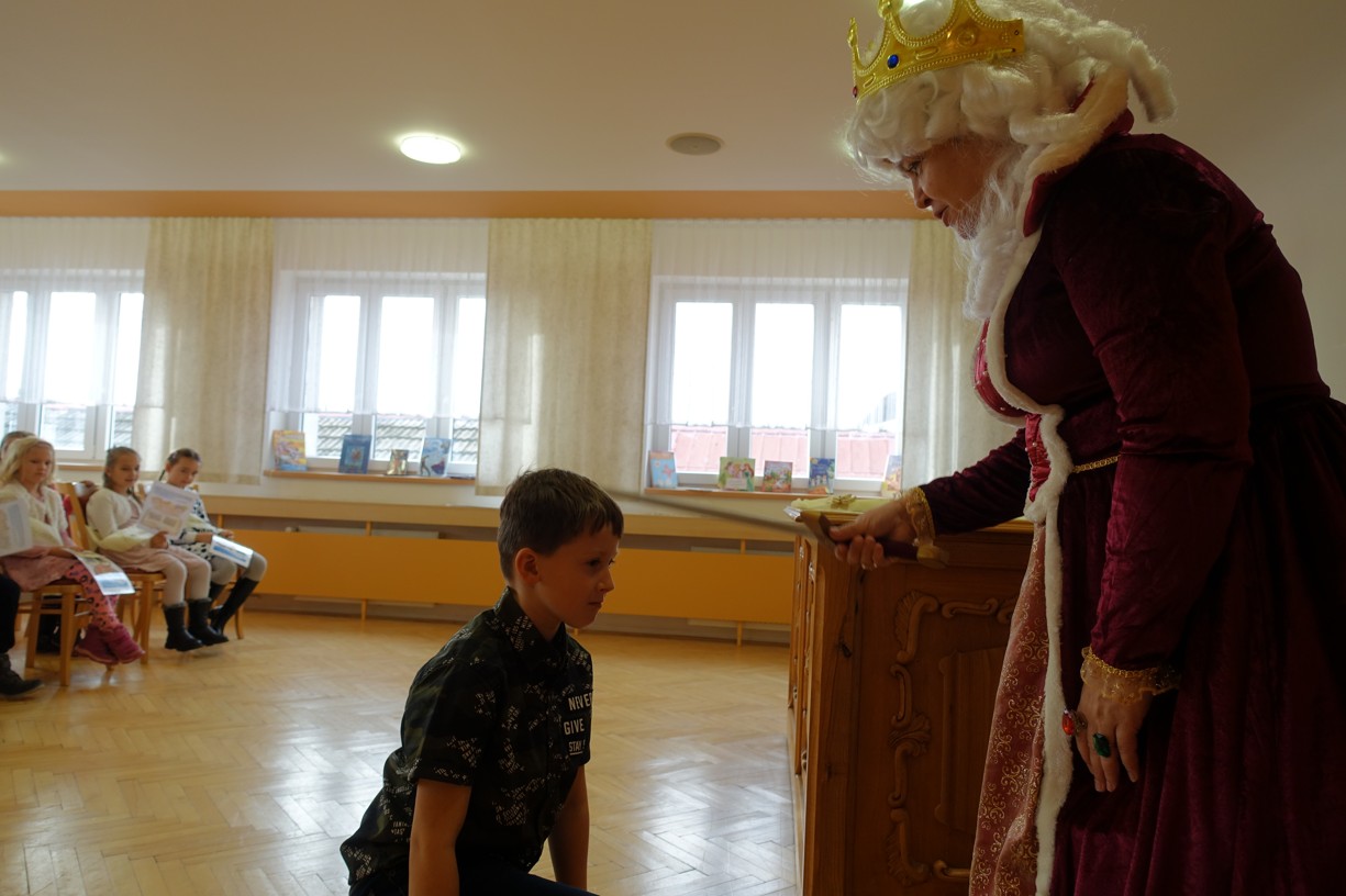 Královna Abeceda I. se přesvědčila o tom, že děti druhé třídy ZŠ Chlebičov abecedu umí jako když bičem mrská při slavnostním pasování dětí na Princezny čtenářky a Prince čtenáře.