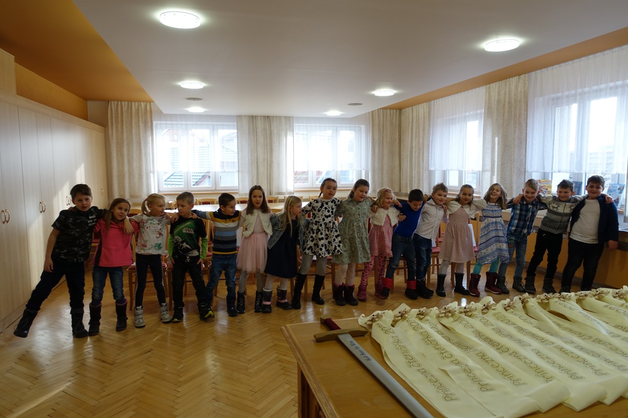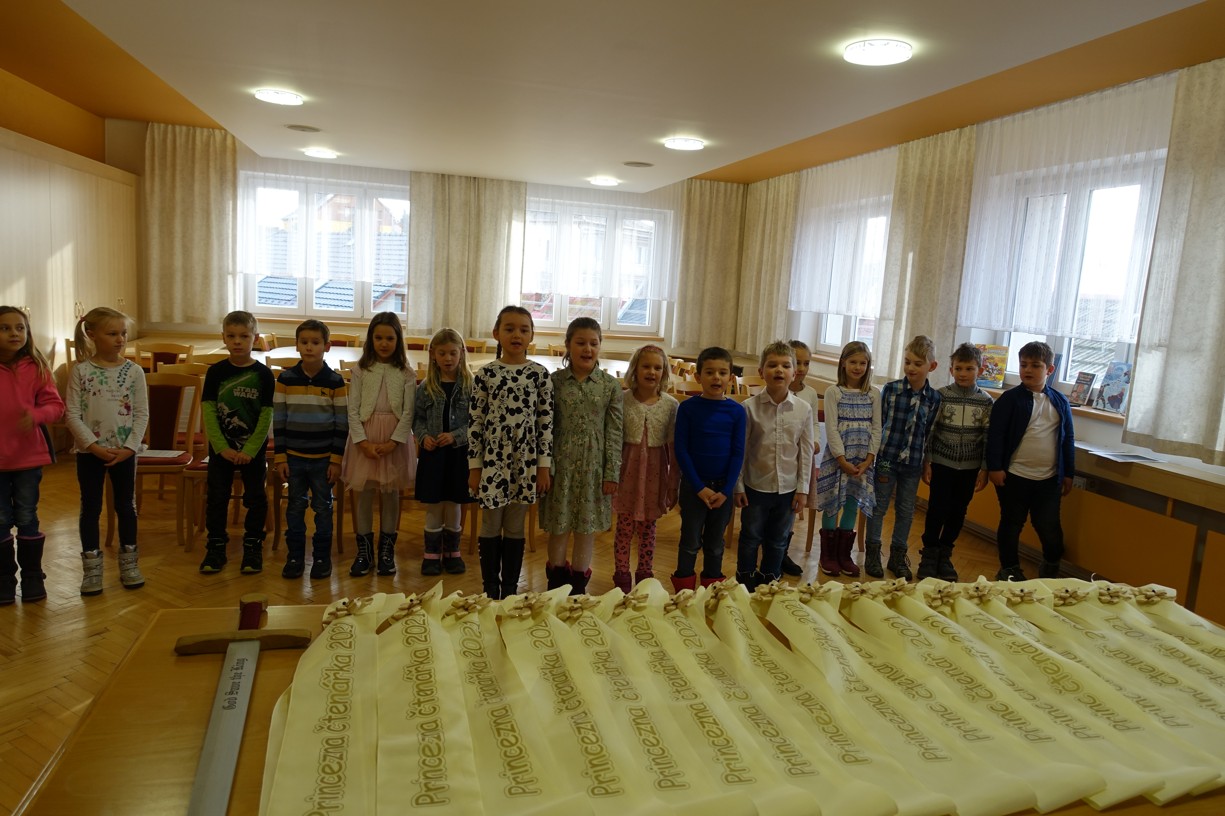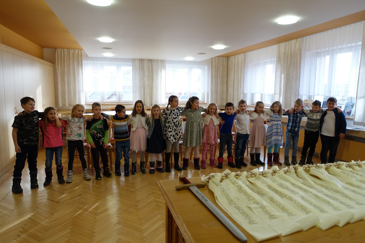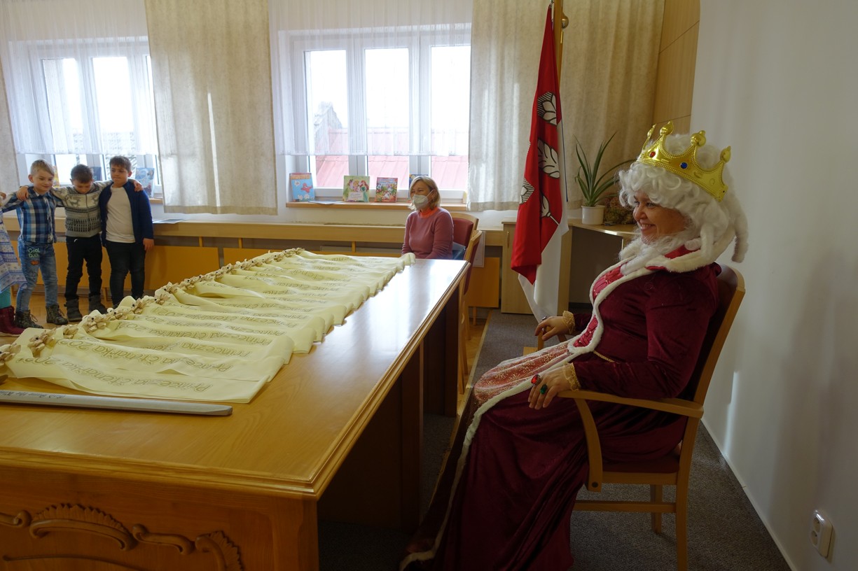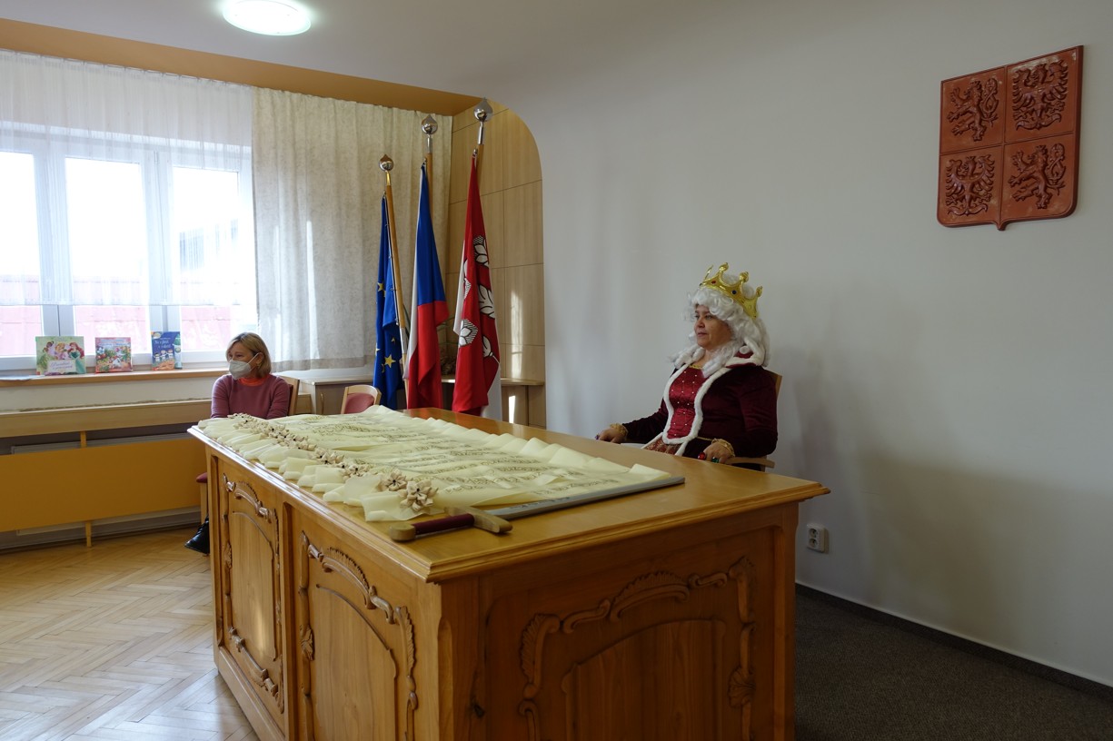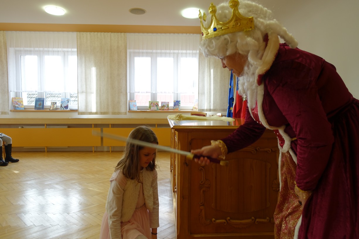 Královna Abeceda I. se přesvědčila o tom, že děti druhé třídy ZŠ Chlebičov abecedu umí jako když bičem mrská při slavnostním pasování dětí na Princezny čtenářky a Prince čtenáře.