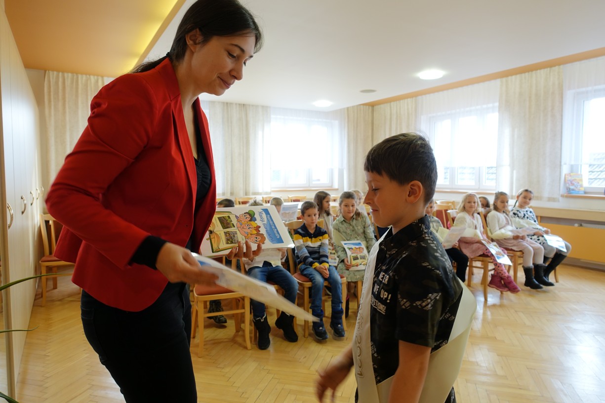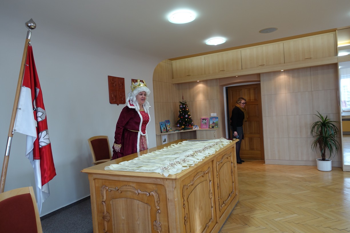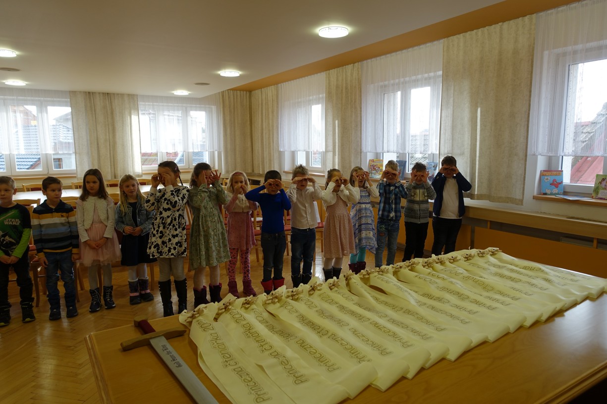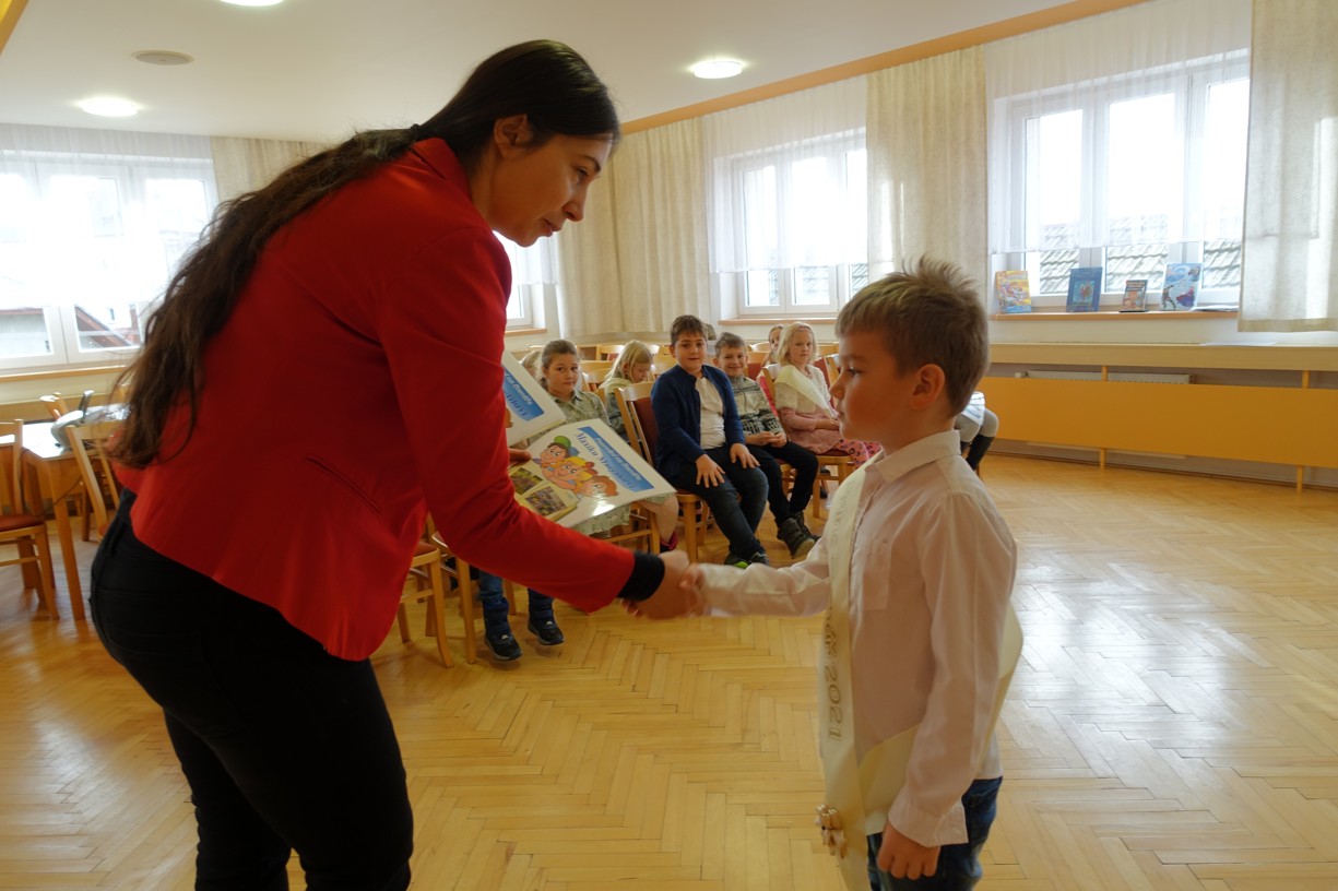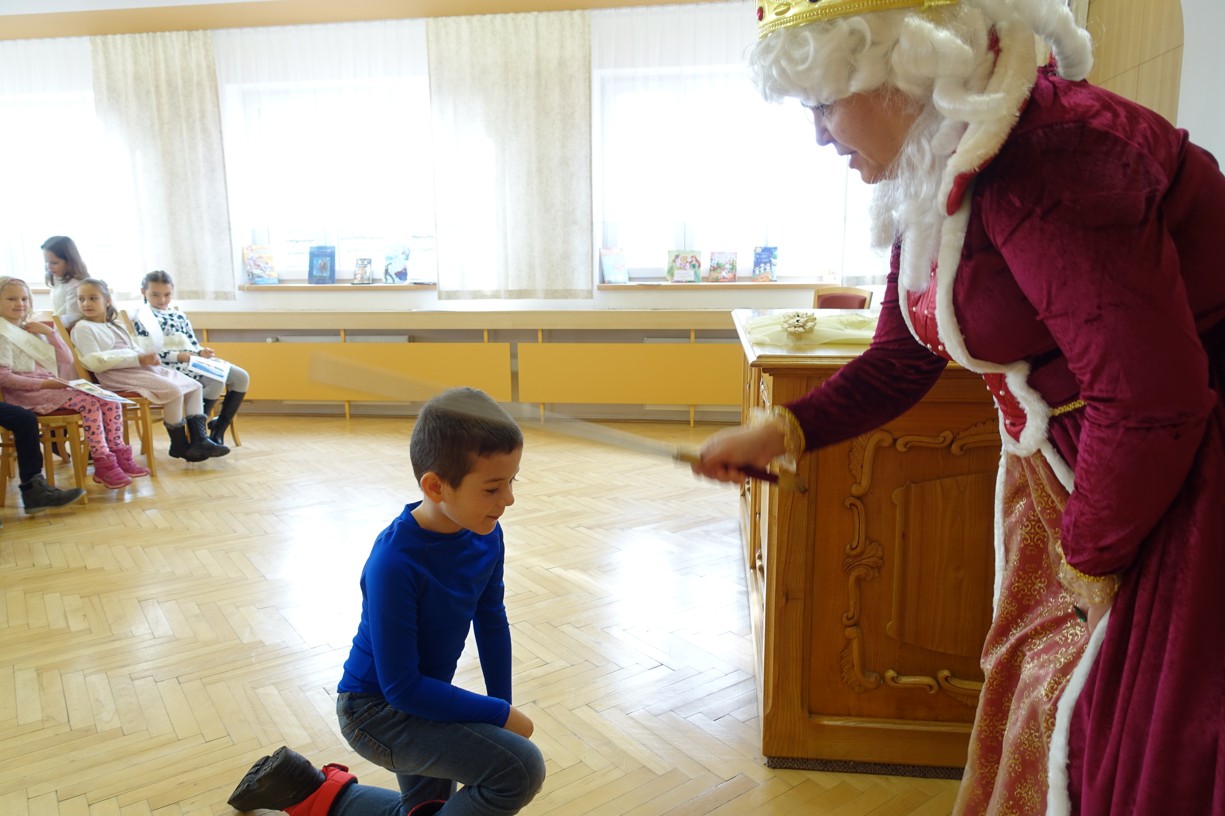 Královna Abeceda I. se přesvědčila o tom, že děti druhé třídy ZŠ Chlebičov abecedu umí jako když bičem mrská při slavnostním pasování dětí na Princezny čtenářky a Prince čtenáře.