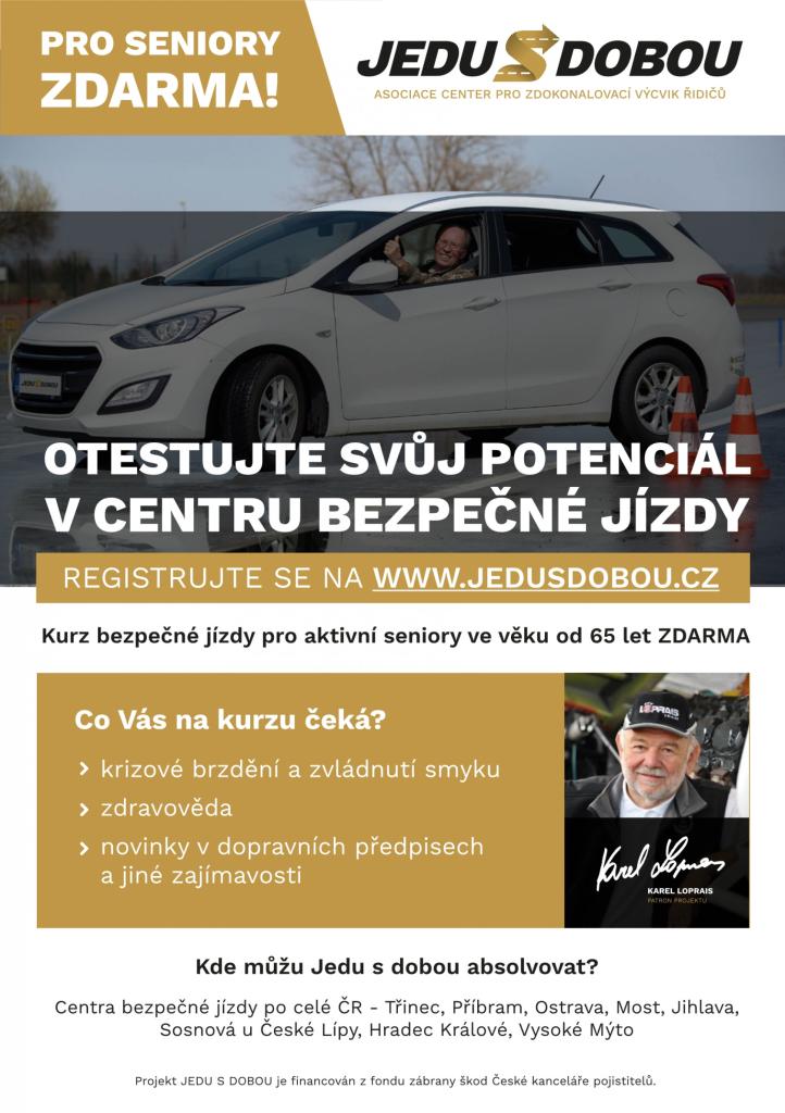 Projekt "Jedu s dobou" je pro občany 65+ zdarma. Termíny pro začátek letošního roku najdete na internetových stránkách www.jedusdobou.cz.