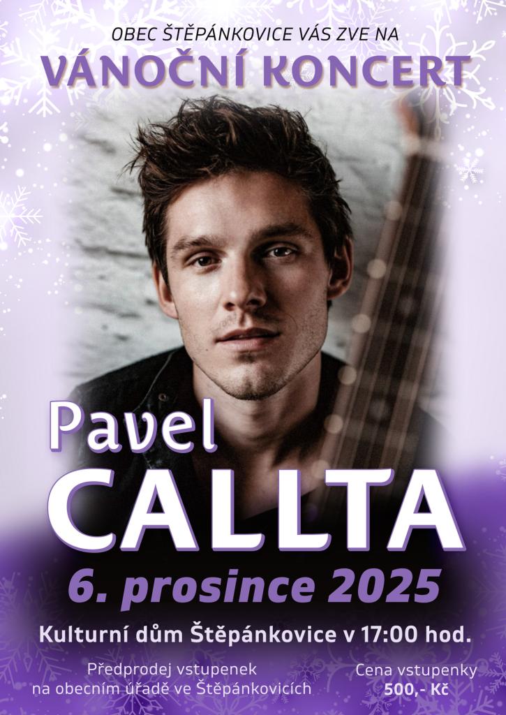 Vánoční koncert Pavla Calty 6. prosince v 17 hod. v KD Štěpánkovice