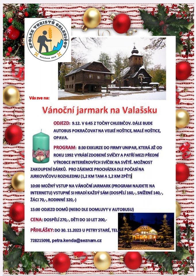 Spolek turistů pořádá dne 9. listopadu výlet spojený s vánočním programem.